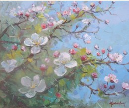 propriu, a unor delicate flori de măr. Expresia, rămînînd autonomă, cochetează